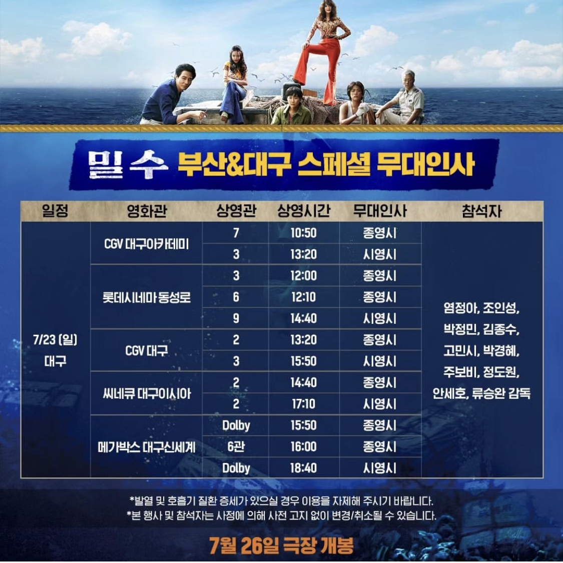 대구 무대인사의 일정은 7/23일 일요일입니다.