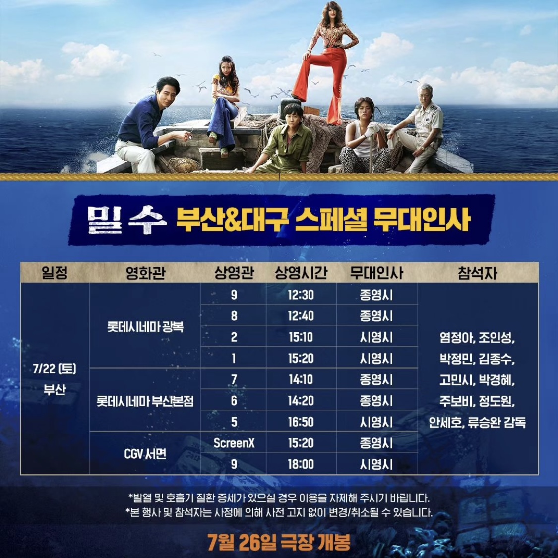 부산 무대인사의 일정은 7/22일 토요일입니다.