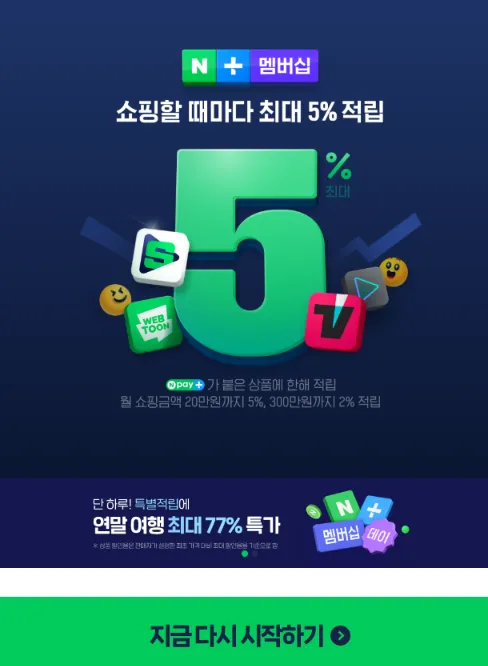 1. 네이버 쇼핑이나 예약, 여행 시 최대 5% 적립을 받을 수 있습니다.